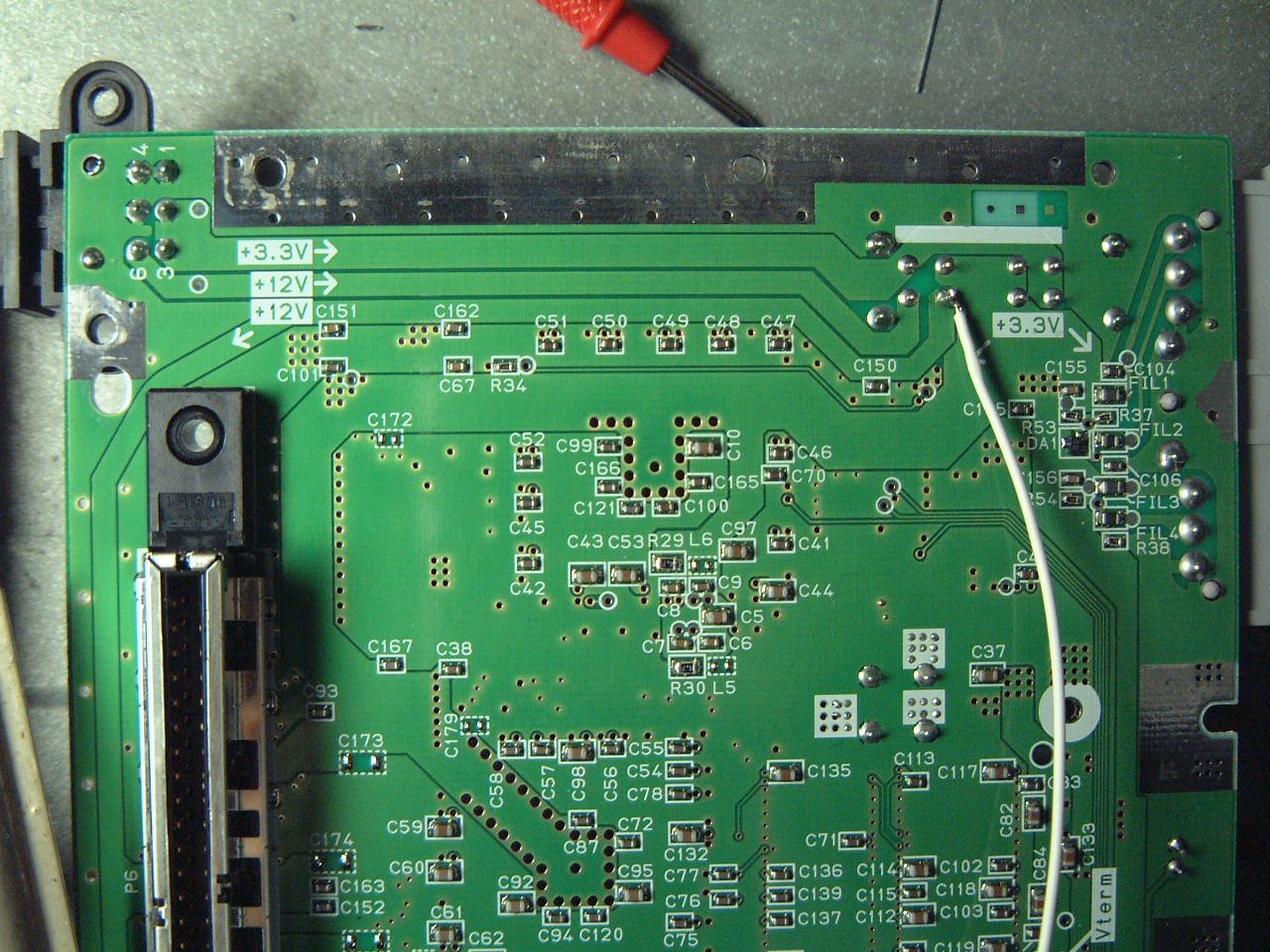 SFC用のRGBケーブルには、21ピンコネクタ部に電解コンデンサが入っているので、 これのプラスマイナスを繋いでバイパスするようにする。