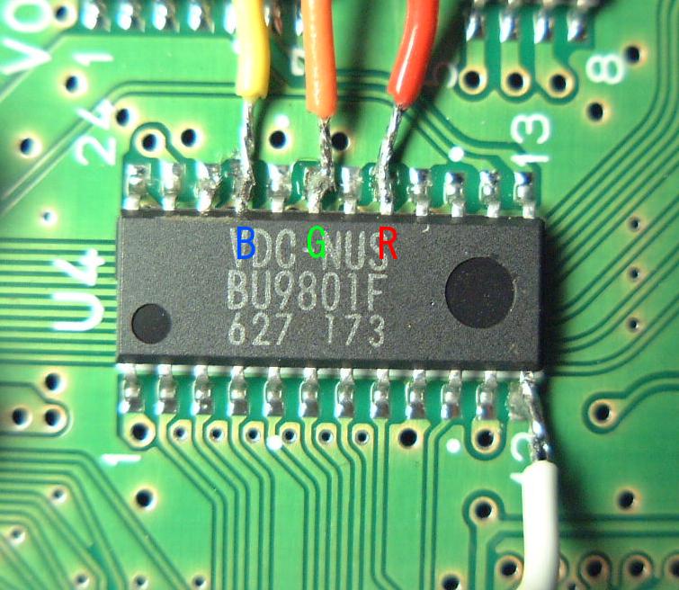 VDC-NUSというICの 17, 19, 21ピンにそれぞれR, G, Bを配線します。