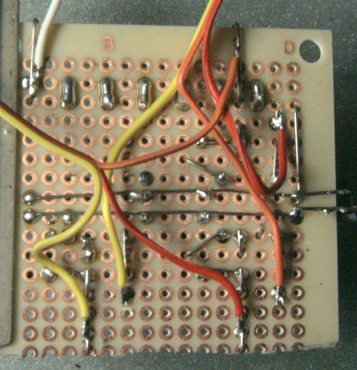 私は7805を切らしていたのでダイオード直列にしたが、7本では電圧を9V以下まで 落としきれなかった。実は10V超えていて絶対最大定格を超えている。まぁ、 動いているのでよしとしてますが…。