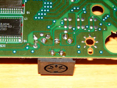 PC EngineをRGB出力化改造する際には、元々のDIN5ピンコネクタをDIN8ピンに 交換すると、筐体に新たな穴を開けたりすることなくRGB信号を外に出せる。 また、この改造の場合、元々のAVケーブルはそのまま使用できる。