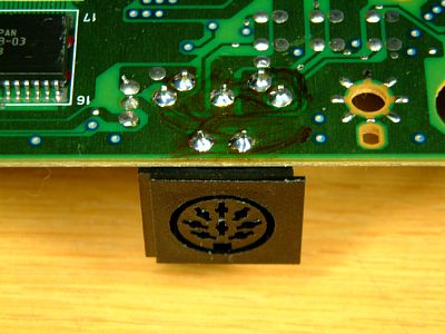 また、DIN8ピンコネクタの5ピンのには無いピンの基板側を切っておく。