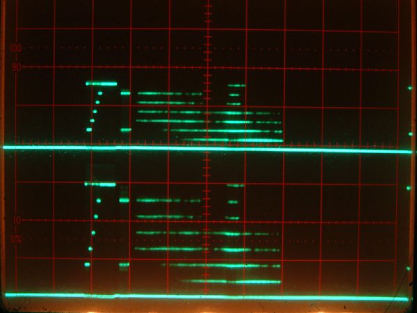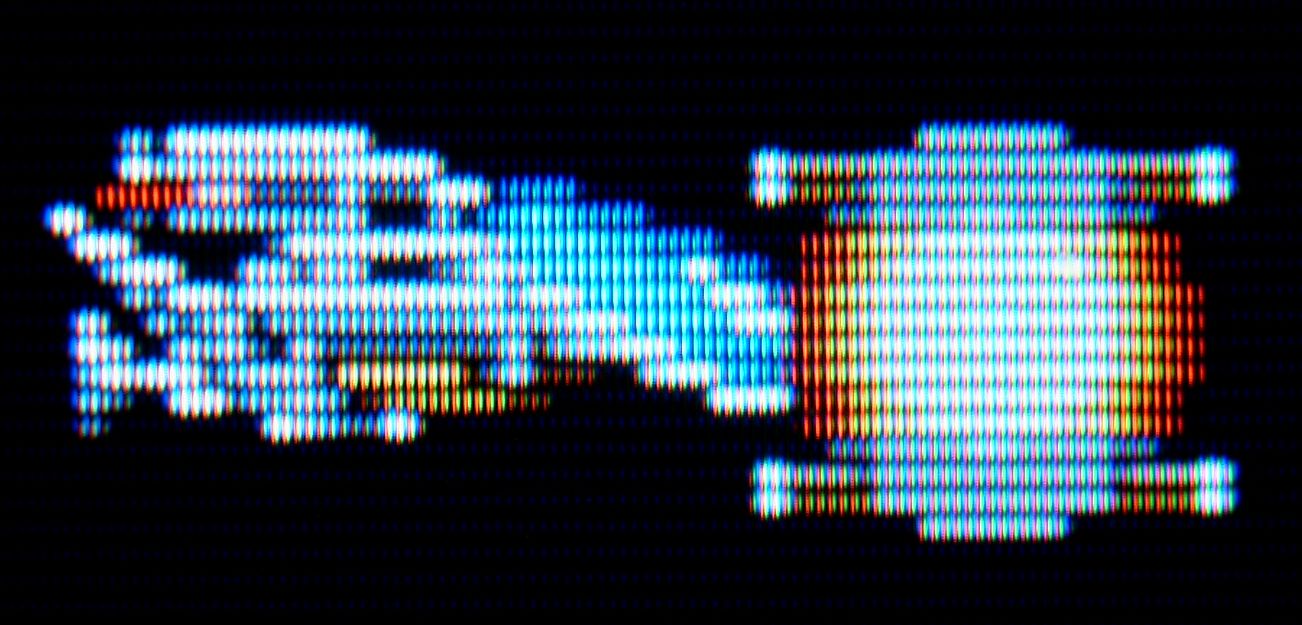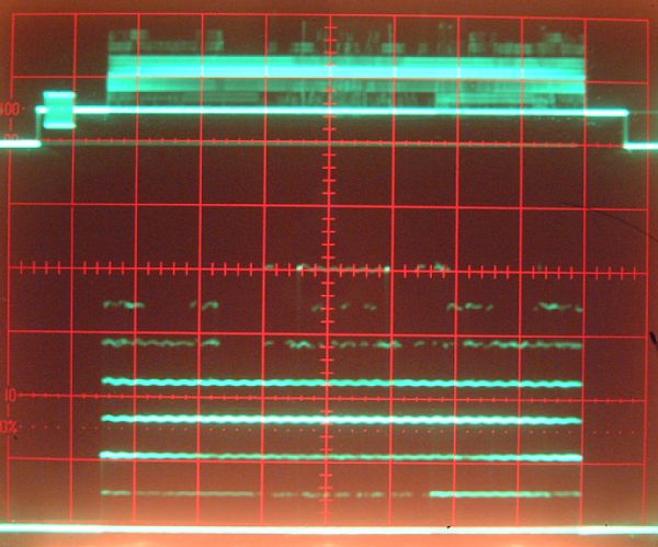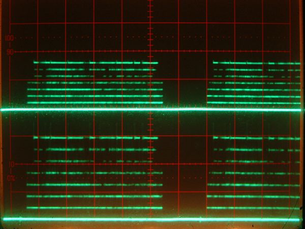 トリガはV-SYNC。1ラインの間は大丈夫だが、1フィールドの間に ふらつく。また、RGB各8階調なのだが1にあたるレベルが怪しくなる。