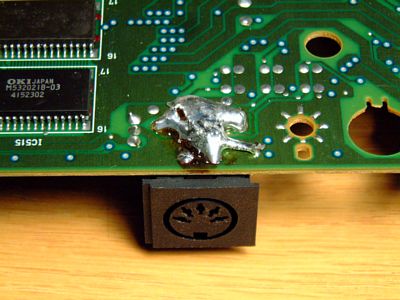 DIN5ピンのコネクタの補強用金具(?)をDIN8ピンに移植。