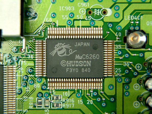HuC6260の47,49,51ピンからG,R,Bが出力されている。