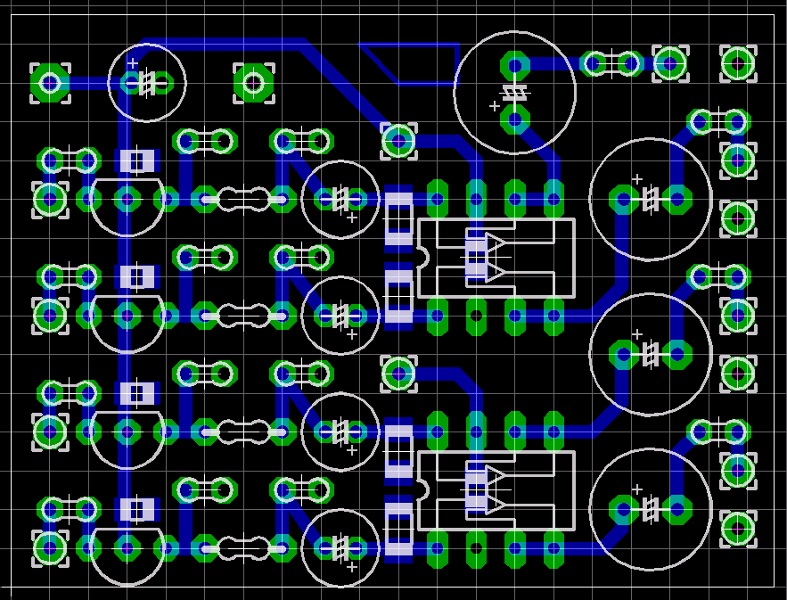 万能基板でも十分組める回路ですが、私は電源とGND周りとかが面倒とか 組み立てるときに「足をこっちに曲げて…」とか考えるのが面倒とかの理由で 基板を起こしました。
