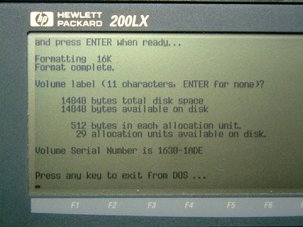 HP200LXにてフォーマット。容量は16Kと誤認されている。